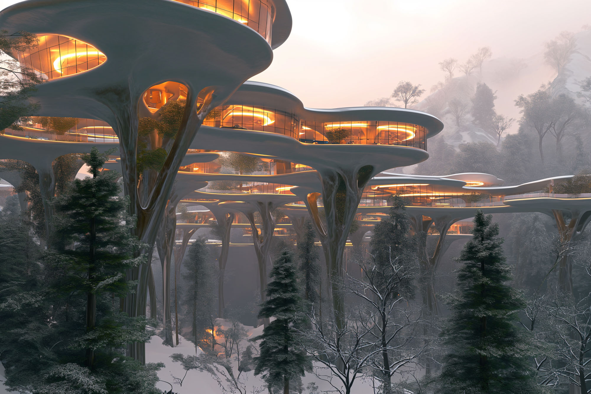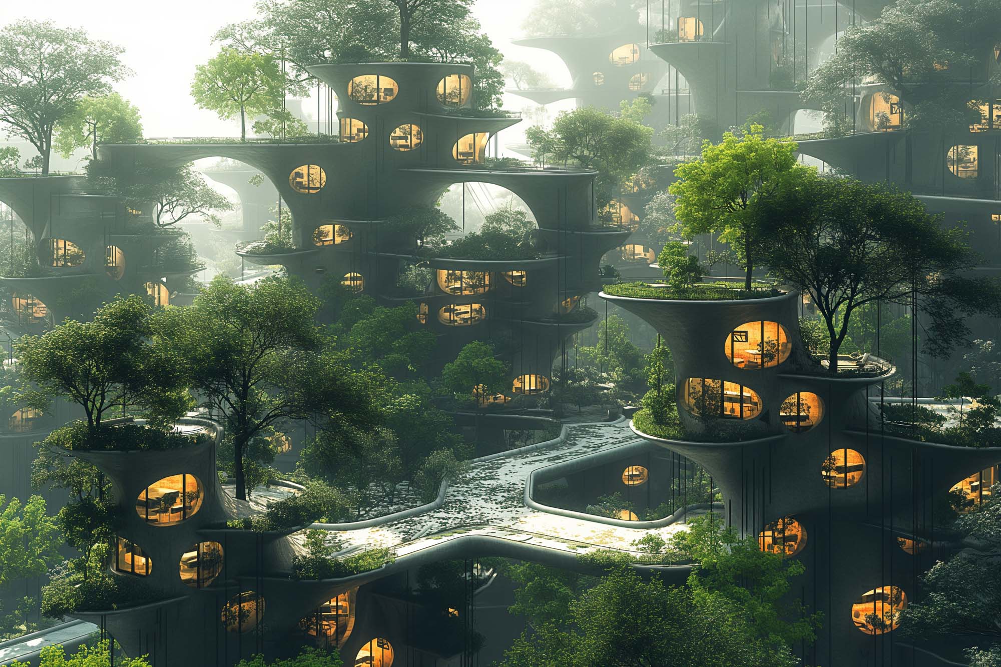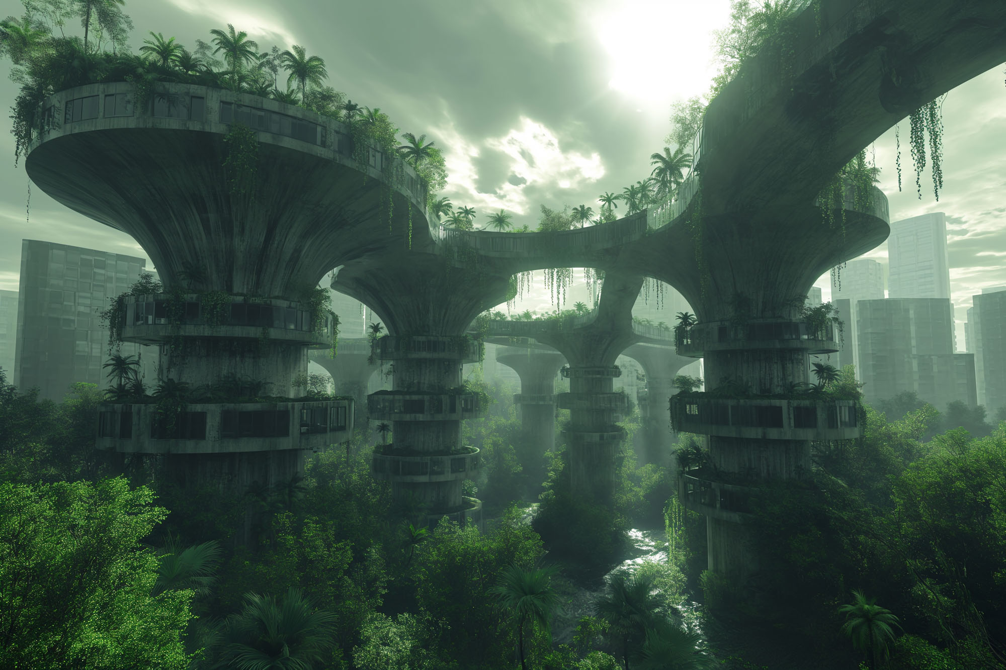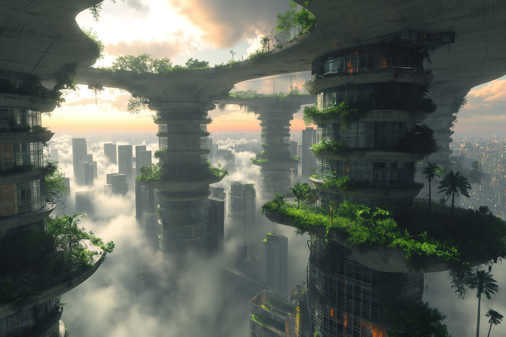 Traditional flat urban designs have led to overcrowding, environmental damage, poor mobility, and even safety concerns. Building directly on the ground has limited the potential of cities, resulting in cramped spaces, inefficient traffic systems, and unsustainable practices. At Diffjustdiff, we’ve developed a new concept to address these issues: Urban Engitecture—a revolutionary approach to urban planning, where cities rise on elevated macrostructure-supported buildings.