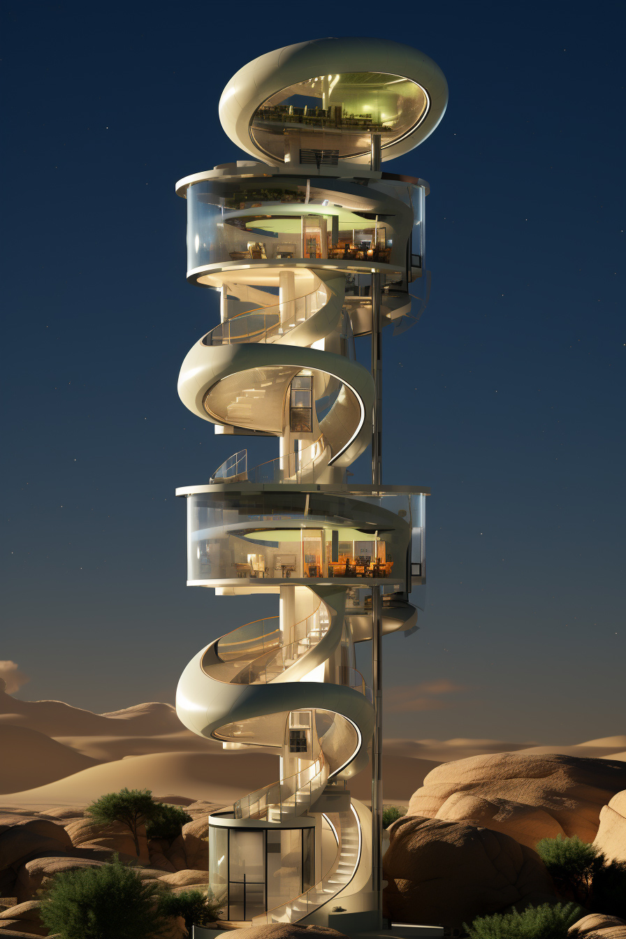 Additionally, these horizontal ‘connecting’ elements at different heights can be used as ‘bridges’ of communication between one building and another, as high-rise public spaces, or any other use that our imagination may suggest to us, like, for example, providing multiple sideward escape options in emergency cases.